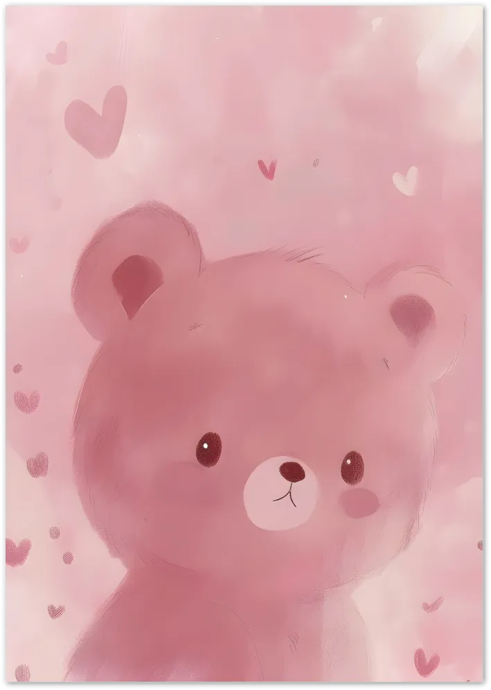 This pink teddy bear poster is filled with softness, warmth and love. Floating among watercolor hearts, it's ideal for a baby girl nursery or a cozy children's room.