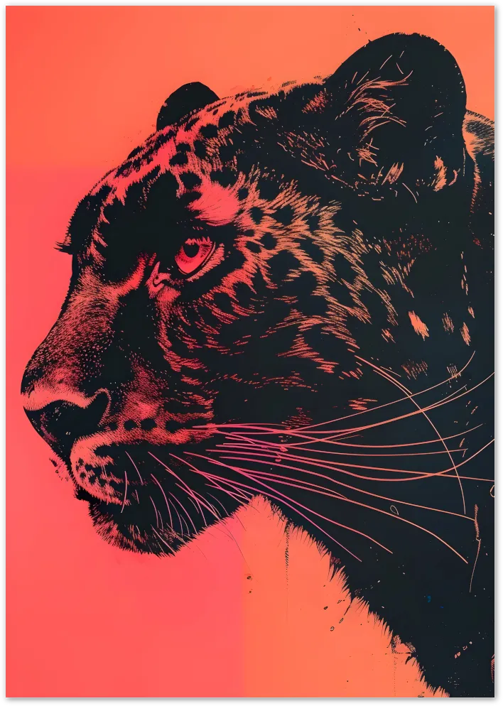 Electric and wild—this pop-art style leopard glows in fierce shades of hot pink and black. A high-impact piece full of attitude and edge