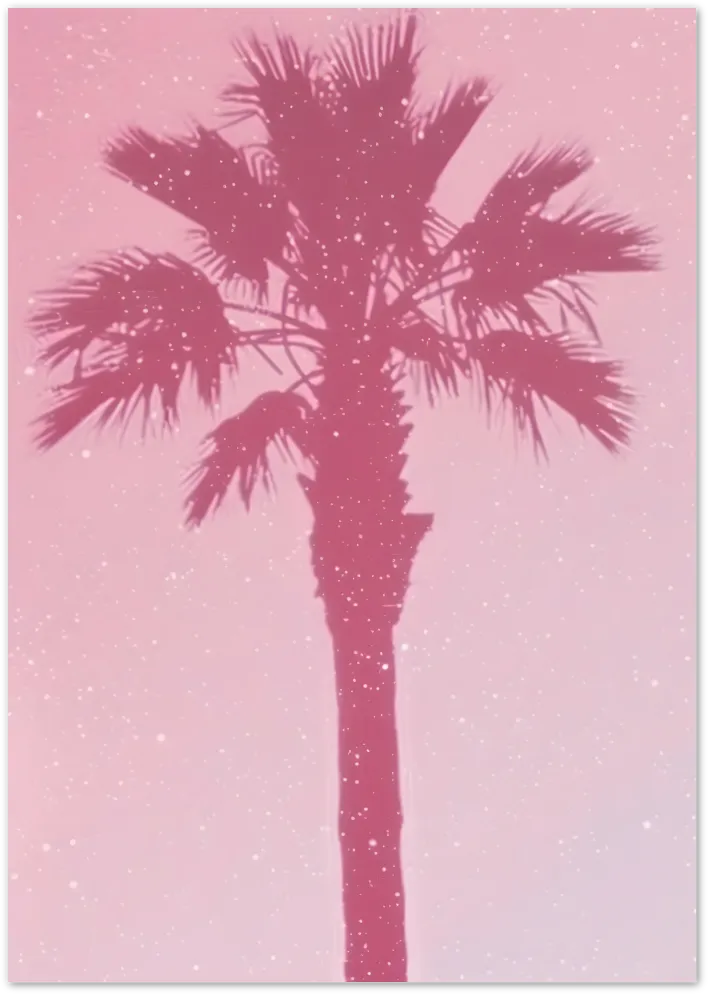 A dreamy pink-toned silhouette of a palm tree against a soft gradient sky. A subtle and stylish tropical wall art print.
