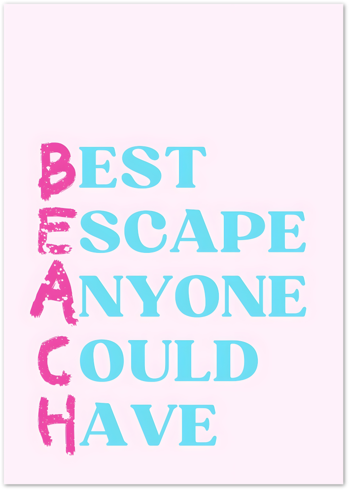A vibrant reminder that the beach is the Best Escape Anyone Could Have — framed in fresh pastel colors and pure summer vibes.