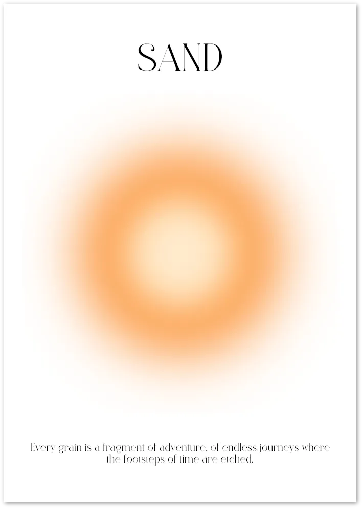 This soft orange sphere glows with warmth and subtle texture, capturing the quiet symbolism of sand, time and journeys.