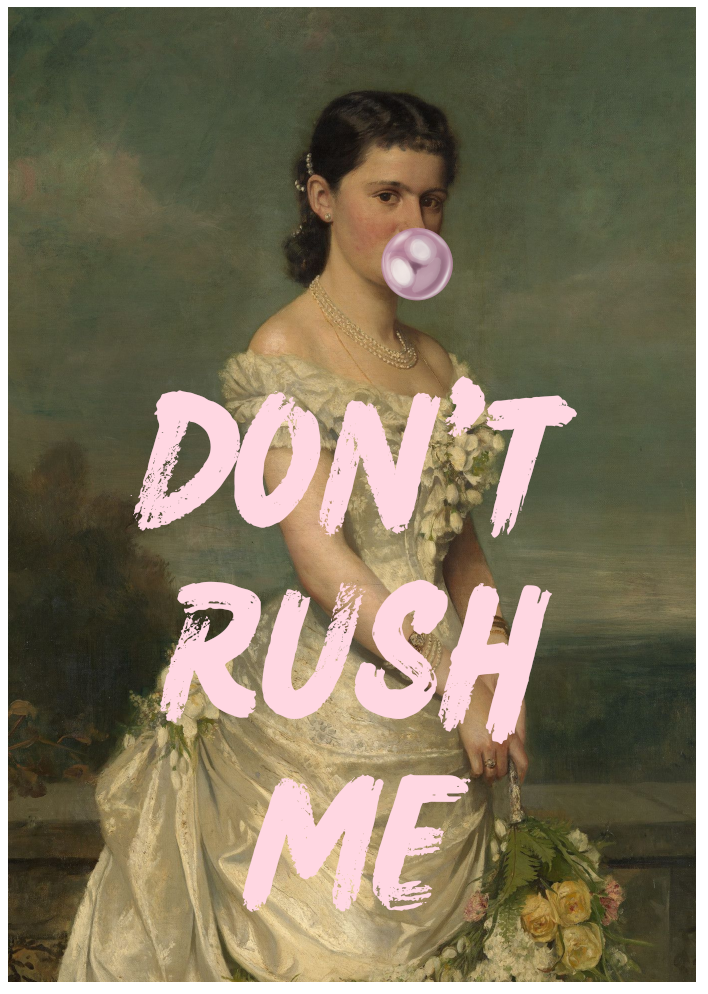 A playful poster blending classic portrait art with bold contemporary typography. The humorous contrast gives this poster character and attitude, making it a standout piece for creative and eclectic interiors.