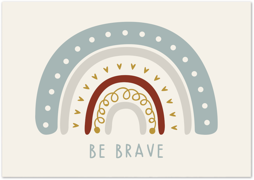A soft illustrated rainbow poster with the uplifting message “Be Brave.” Gentle colors and a positive message for kids spaces.