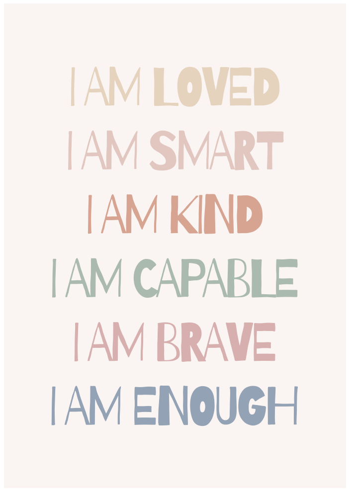 A soft pastel affirmation poster featuring uplifting messages for children. This poster creates a positive and supportive atmosphere.
