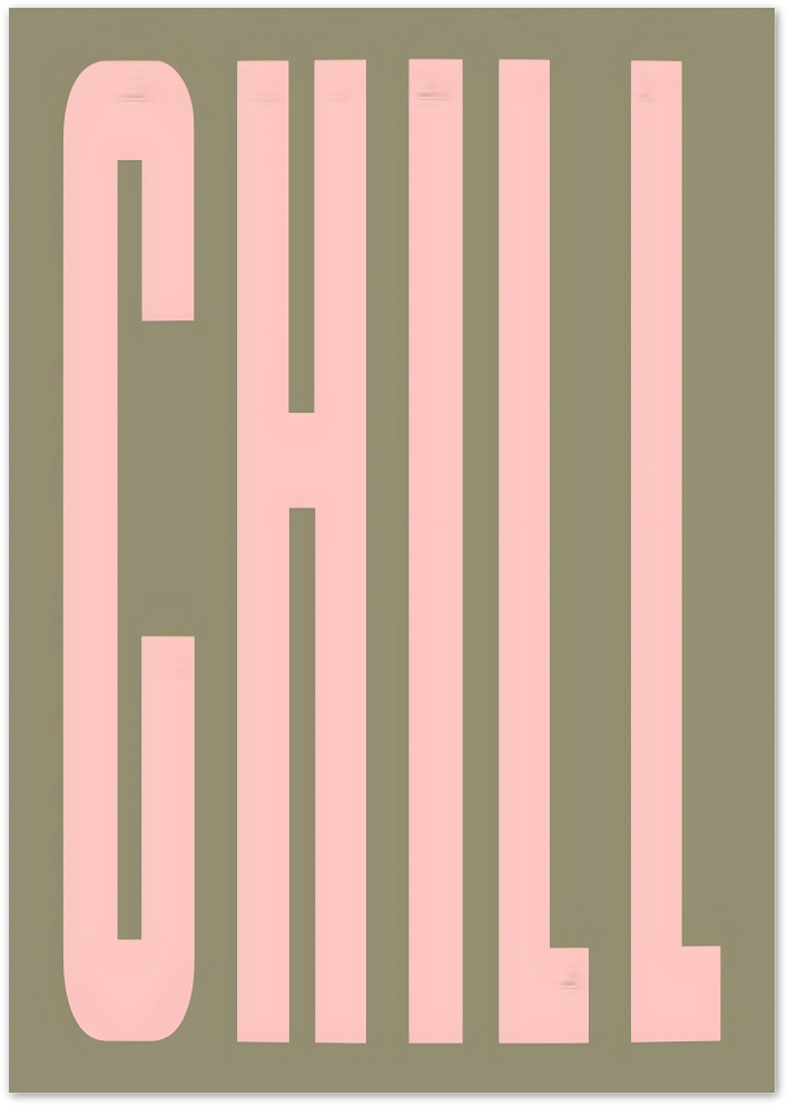This bold typography poster features oversized letters in soft pink tones against a muted background. The minimalist design and calming message make this poster ideal for modern, creative or relaxed interiors.